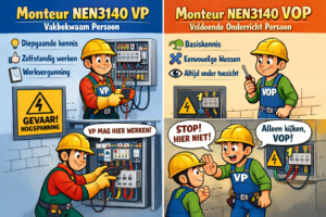 Binnen de norm NEN 3140 worden verschillende aanwijzingen gebruikt voor medewerkers die werken aan of in de buurt van elektrische installaties. De twee meest voorkomende zijn VOP en VP. Hieronder leggen we het verschil helder uit.
